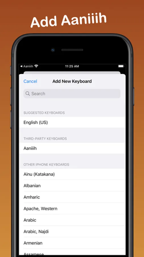 Aaniiih Keyboard is the iOS app that let's you type correct Aaniiih into any text area on your iOS mobile device by simply switching into the Aaniiih Keyboard Layout.