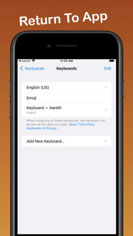 5. Go back to the App and "Test Keyboard"
