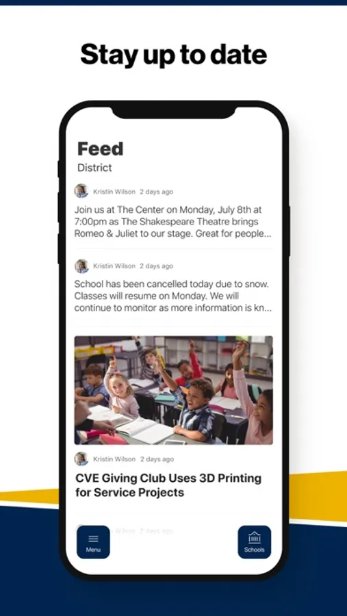 In the Live Feed is where you’ll find updates from the administration about what’s going on in the district right now. Whether that’s celebrating a student’s success, or reminding you about an upcoming deadline.