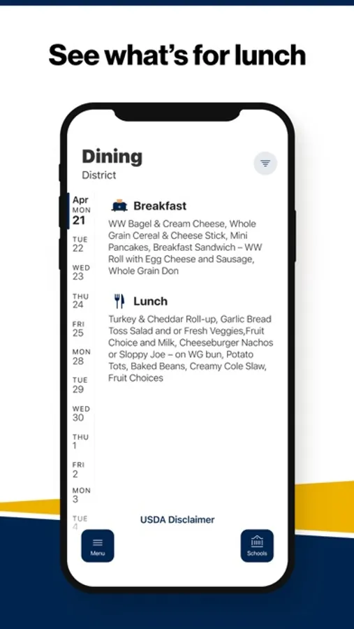 Within the dining section, you’ll find an easy to navigate, weekly menu, sorted by day and meal type.