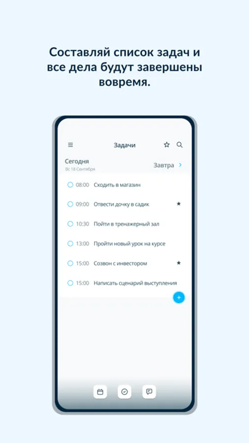 Мы прекрасно понимаем, что повседневные дела есть у каждого, поэтому при создании задачи можешь установить частоту ПОВТОРОВ – ежедневно, еженедельно или ежемесячно – задача автоматически будет дублироваться, тебе не нужно прописывать её дважды.