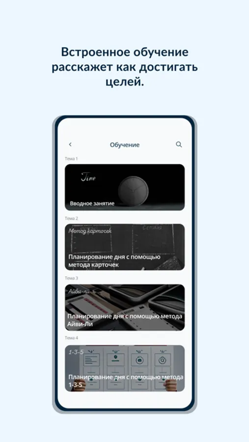 Мы не собираемся оставлять тебя один на один с незнакомыми методами планирования. Нам важно, чтобы ты научился пользоваться ими по полной и смог раскрыть весь потенциал своего времени. Поэтому перед тем, как начать пользоваться ToDays мы настоятельно рекомендуем пройти все уроки в разделе обучения – там подробно описано то, как нужно пользоваться каждым из видов планирования. После каждого урока тебя ждет тест из 4 вопросов – чтобы открыть один из методов, нужно набрать 75% правильных ответов за все тесты. Как только раздел обучения будет успешно завершён, ты сможешь открыть новый вид планирования. Выбирай тот, что понравился тебе больше всего!