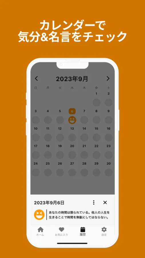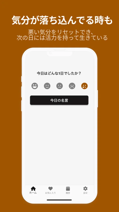 このアプリは1日1回、あなたのその日の感情に最適な名言を提示してくれます。