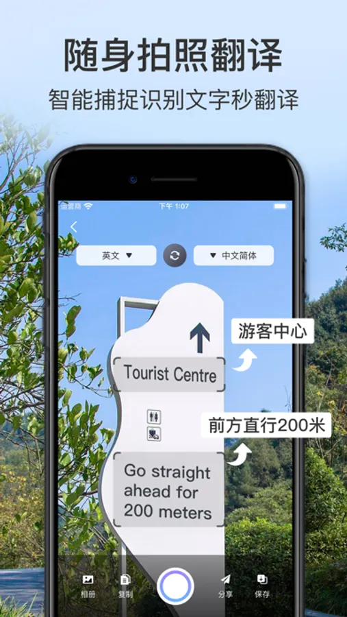 4.扫描翻译:文件是外文,读不出看不懂,只要一张图片,即刻完成图文转换,翻译成想要的文字