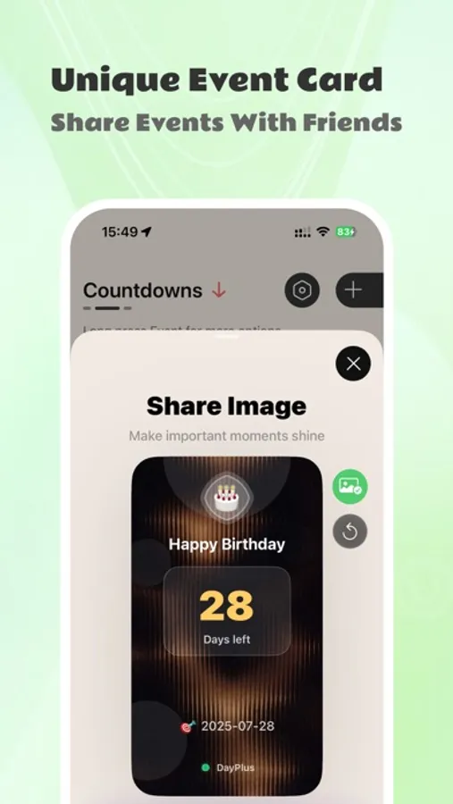 Download DayPlus now! Counting down days and events just got easy. Customize, sync, track, and share countdowns on your app, lock screen, and home screen. Don’t miss any important event - Set reminders and stay organized. Let the countdown begin!
