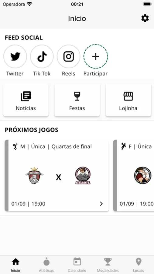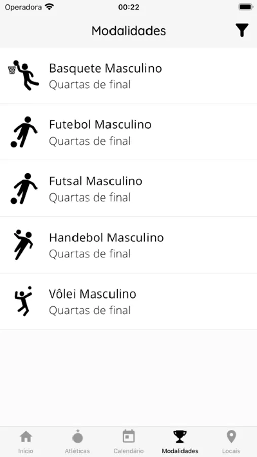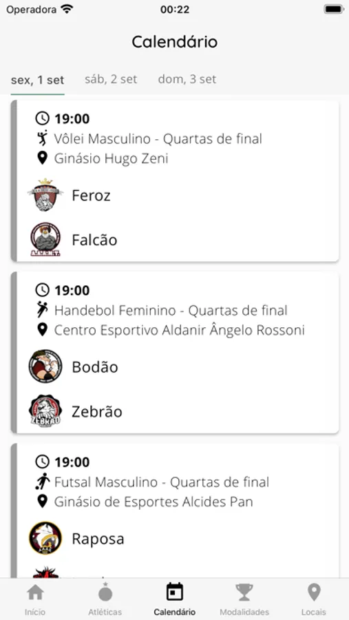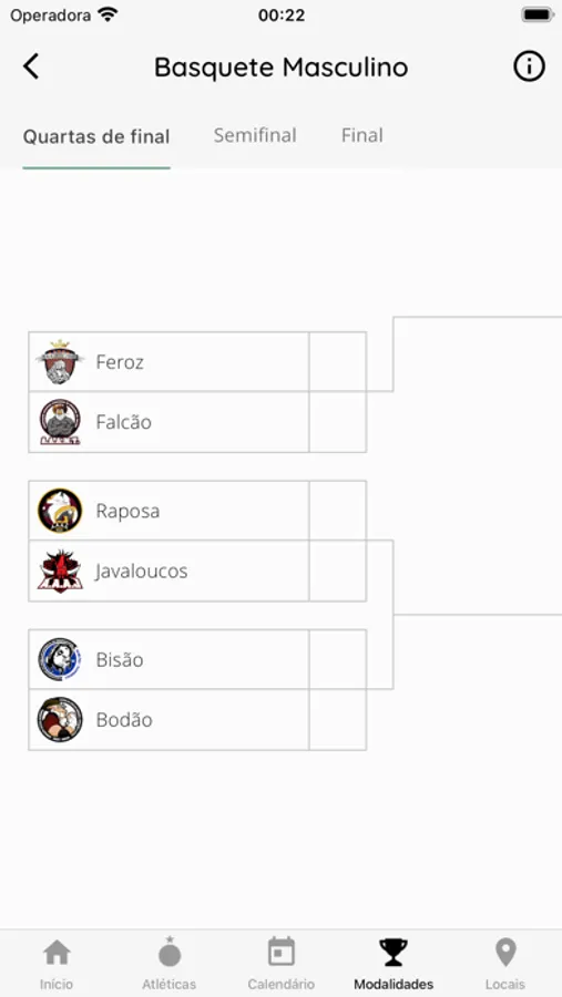 - Ver o calendário de jogos da competição, chaveamento das modalidades e classificações