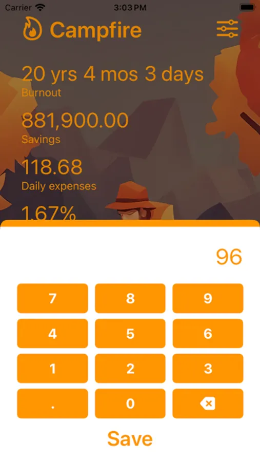 3. Asset Utilization Duration: Based on the recorded numerical values and asset information, Campfire estimates the duration for which the your assets can sustain you. By inputting the value of your assets and earning, the app calculates the estimated time frame based on the average daily spending.