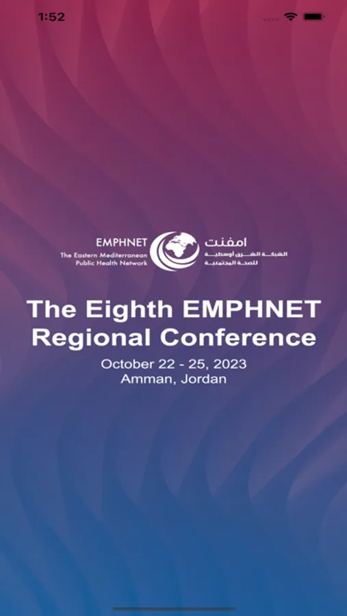 This is an application for the Eight EMPHNET Regional Conference it includes an event agenda, speaker list, floor plan for event venue, photos from the event, and tools for networking.