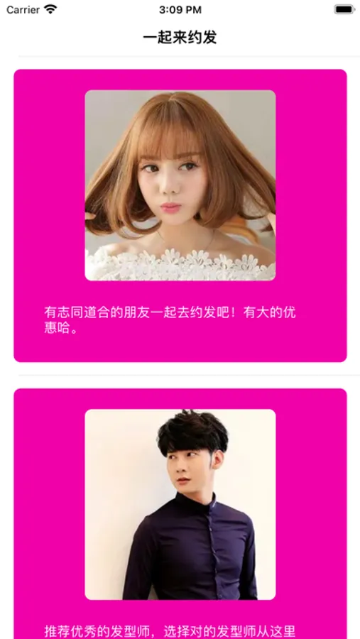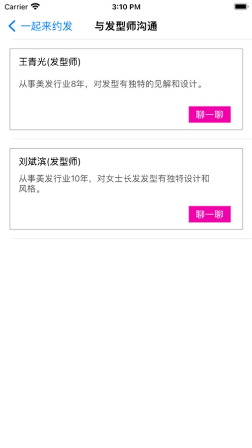 项目还会为用户推荐优秀的发型师,用户可以选择发型师聊聊发型。