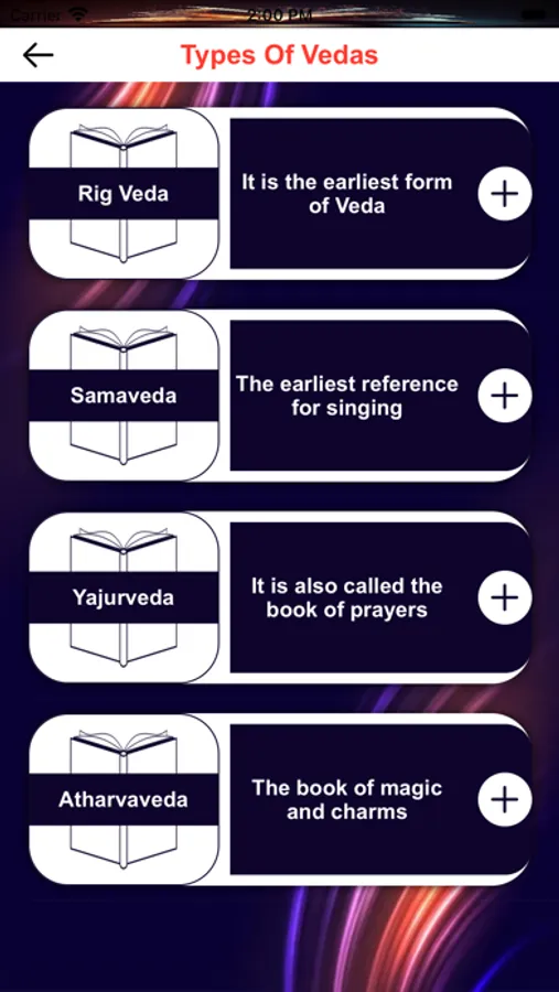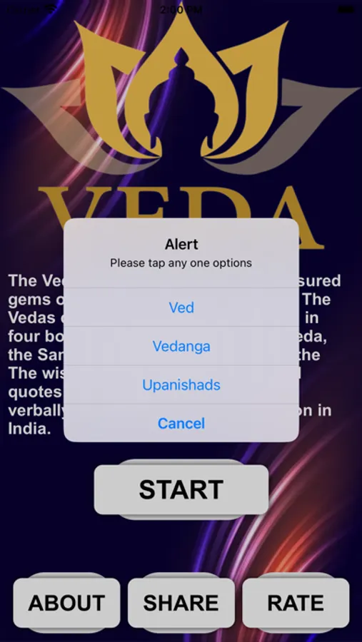 Once the app is started, users can pick one option like - Ved, Vedanga, or Upanishads.