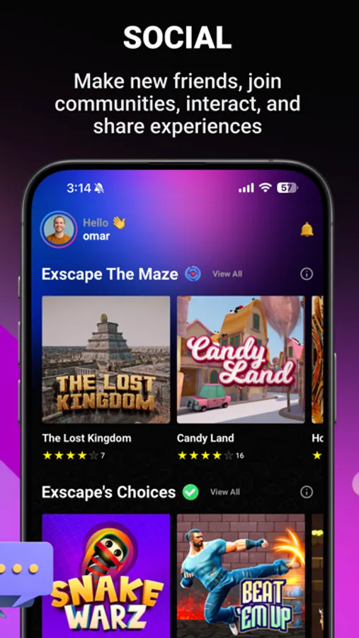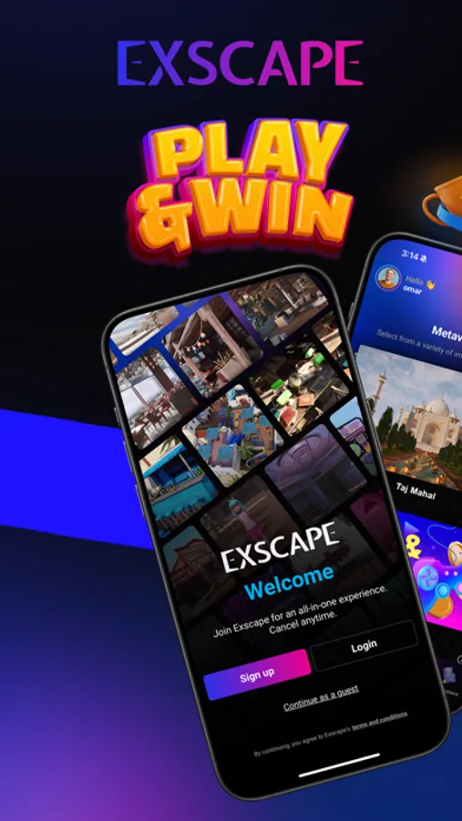 Exscape is not just another app - it's a groundbreaking interactive entertainment platform that blends play-to-win gaming, social interaction, and an unique metaverse into one experience.