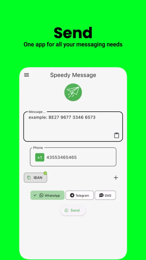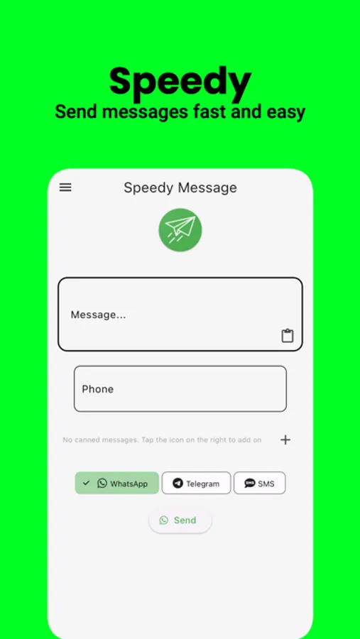Legal Notice: Speedy Send is a third-party app and is not affiliated with or sponsored by Apple iMessage, Google, Telegram, WhatsApp, Viber, or Meta Inc.