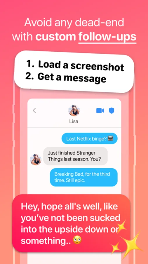 Witty Follow-Ups: Keep the conversation flowing. Use the app to generate engaging follow-ups. Just upload, tap, and keep the spark alive.