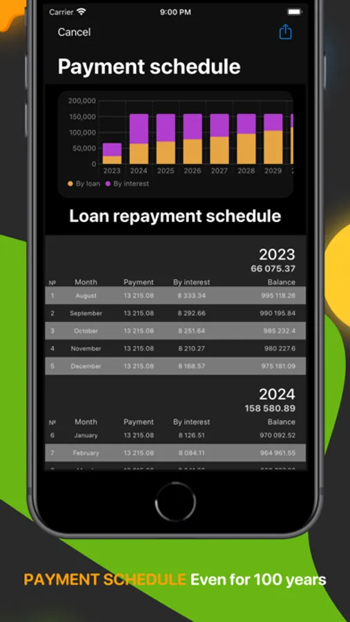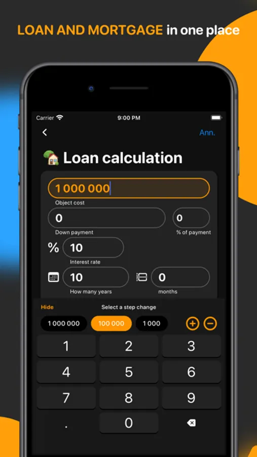 Loan and mortgage: calculator is an application in which you can look at the amount of overpayment, payment schedule and set the parameters of the interest rate and any term.