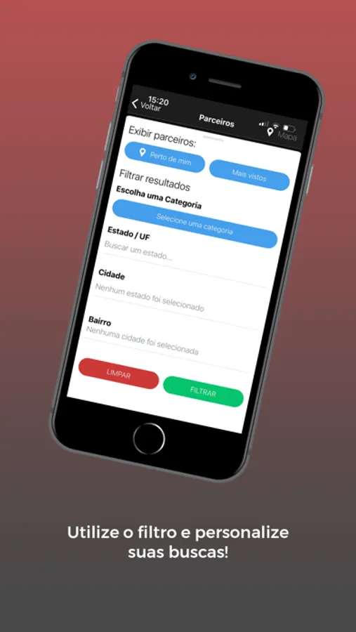Busca de parceiros através do geolocalizador, filtragem personalizada para as buscas de empresas parceiras, acesso ao cartão virtual para utilizar os descontos, acesso a notícias e além do SAC para atendimento.