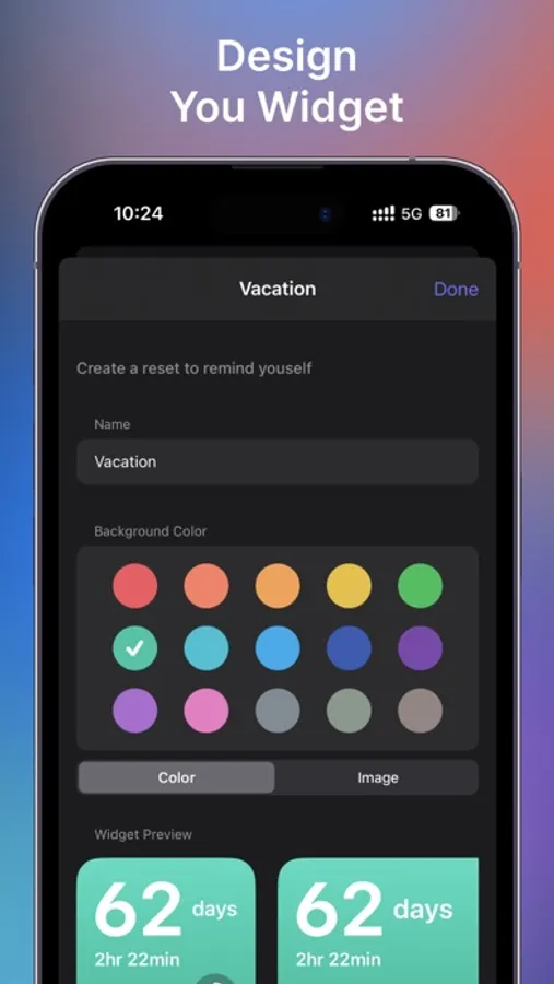 Set reminders for anything you want, from calling mom to tracking your quit smoking journey. Enjoy full customization options, including colorful backgrounds or the option to set a custom image as your background.