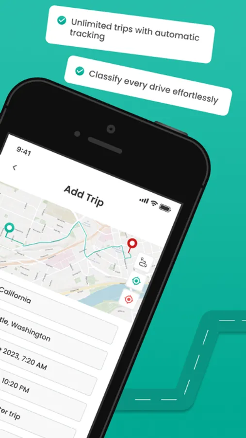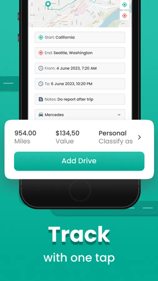 • Easily create past trips and add additional costs such as parking, tolls, or any notes that should be included on your trip