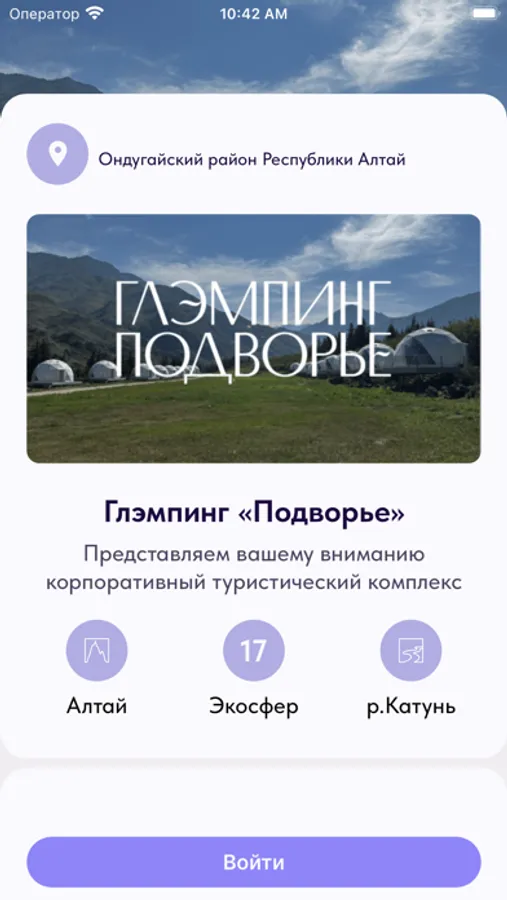 Глэмпинг расположен в Онгудайском районе Республики Алтай, у слияния рек Катунь и Урсул. Чистый горный воздух, спокойствие и невероятная, нетронутая природная красота вокруг.