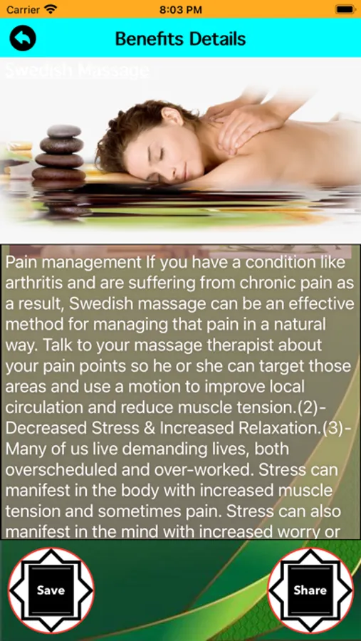Make your massaging calculations easy and get to know about different benefits of different massage with the help of this easy to use, amazing and ads free app.