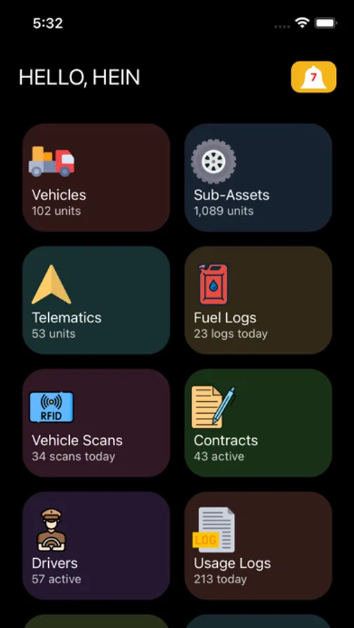 Fleetsense XR makes use of push notifications to inform you of important events, and condenses all the data below for use on your mobile device:
