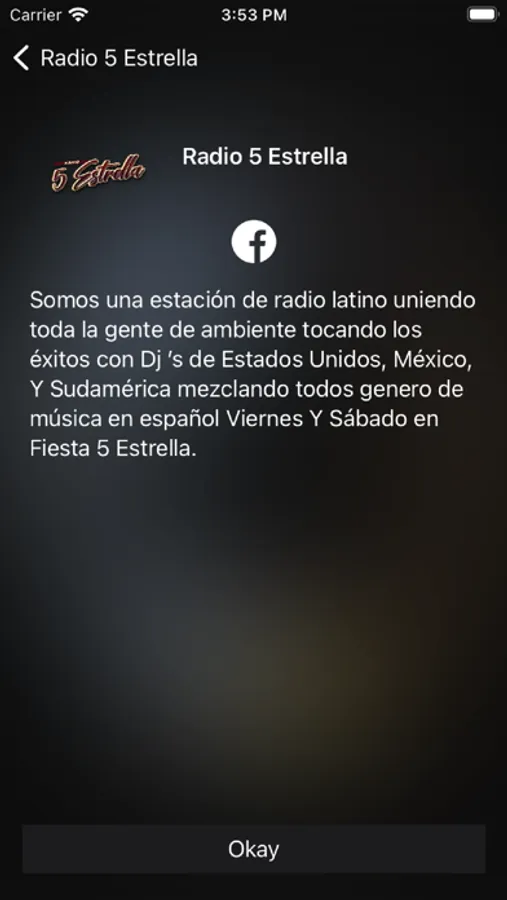 Somos una estación de Radio Latino uniendo toda la gente de ambiente tocando éxitos. Los Invitamos a escuchar cada Viernes Y Sabado a partir de las 6 pm para escuchar Fiesta 5Estrella con Dj ’s de Estados Unidos, México Y Sudamérica mezclando todos los generos.
