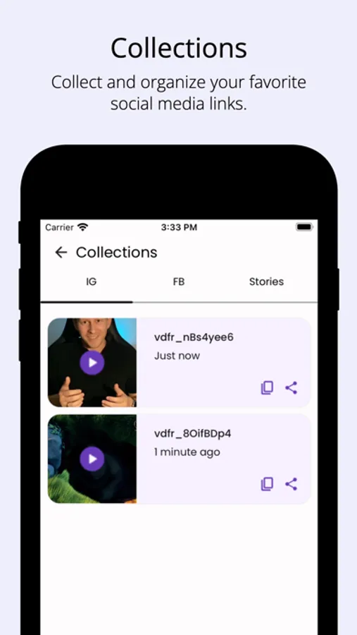 - Easily organize links to images, videos, and GIFs from social media sites.