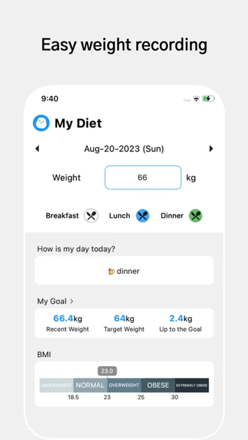 "My Diet" is a lose weight and weight management app that helps you achieve your goal weight by easily recording your weight anytime, anywhere.