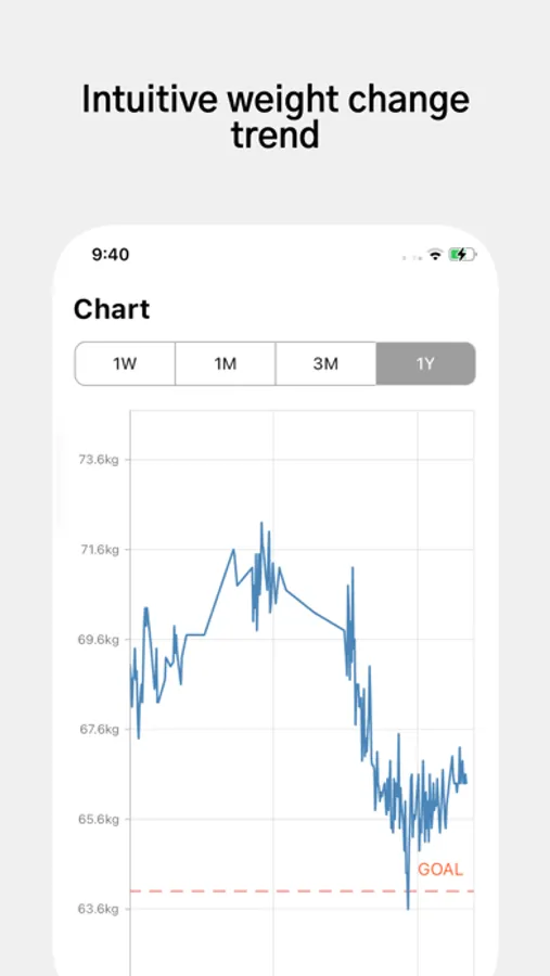- Displays weekly, monthly, 3-month, and yearly weight change trends