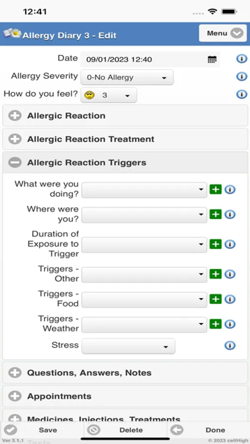 -Annotate and Track your allergic reactions, triggers, appointments, tests, weight, diet, exercise, medications and side-effects, treatments, doctor visits, procedures, vital statistics, and the mental and physical symptoms you are experiencing.