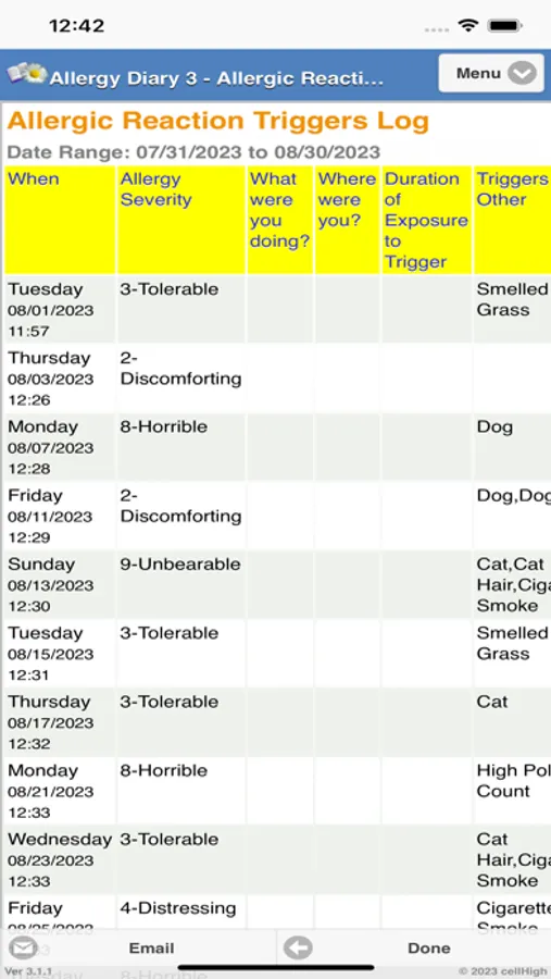 Designed by a fellow allergy sufferer to track all aspects of your Allergy with a few screen taps.