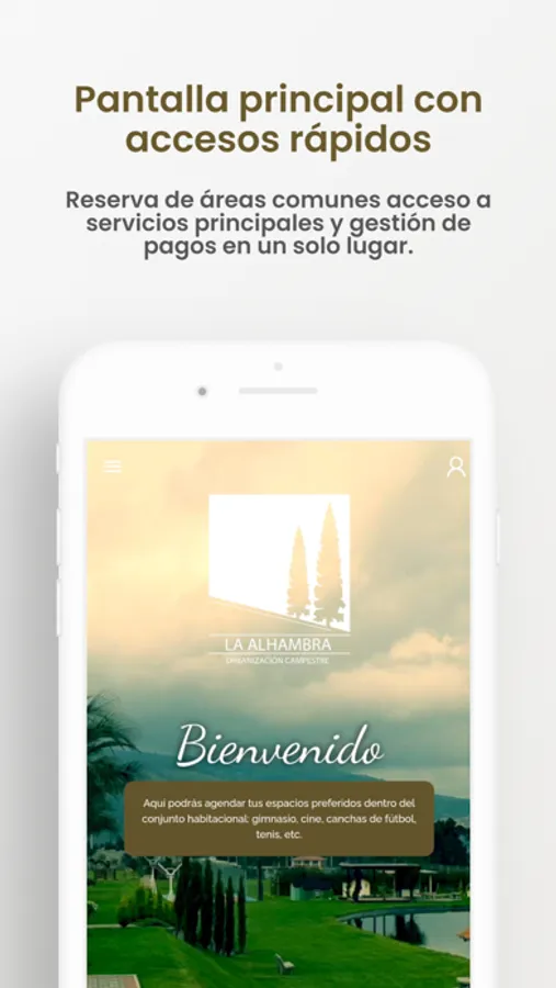 La Alhambra - Urbanización Campestre, es una aplicación móvil creada para gestionar y facilitar la convivencia en la urbanización ubicada en Tabacundo. Con la aplicación se podrá: realizar reservas de áreas comunales de forma fácil y rápida, generar invitaciones para el ingreso de terceros a la urbanización, realizar registro de los pagos de alícuotas, reservas, multas entre otros y acceder a los diferentes servicios que una vida organizada requiere.