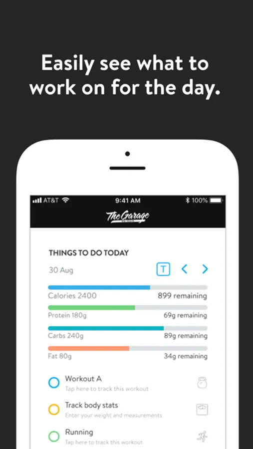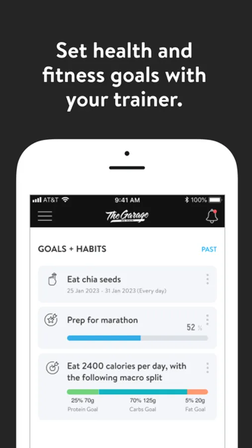 With the Garage On Main App, you will have access to workout programs designed specifically to help you reach your fitness and health goals! You can follow & track your workouts, your nutrition, your lifestyle habits, measurements and results–all with the help of your coach.