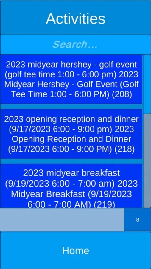 View a list of attendees, activities, and documents such as maps and schedules for MCAA events.