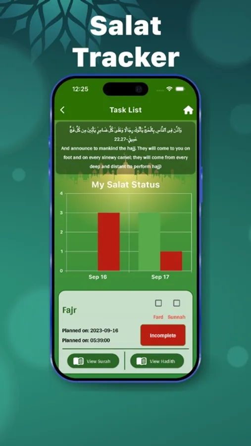 Stay motivated on your prayer journey with the "My Salat Status" feature. Monitor your consistency and growth in performing prayers, fostering a sense of accomplishment and continuous commitment to Allah (SWA).