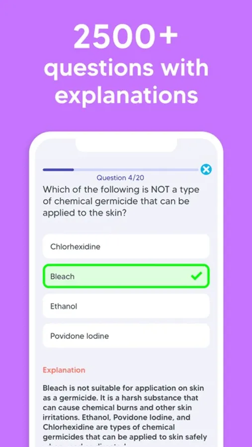 Our Cosmetology State Board exam prep application is renowned for its focused and thorough content analysis, cutting-edge learning methods, and rigorous precision. We delve deep into every section of the latest Cosmetology exam, consistently refining our material to stay relevant. For both correct and incorrect answers, we offer in-depth explanations to reinforce comprehension of crucial exam concepts.