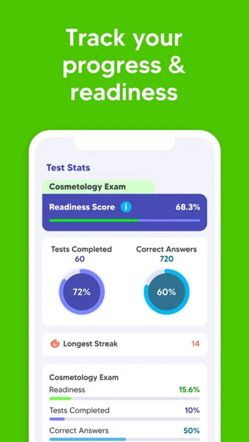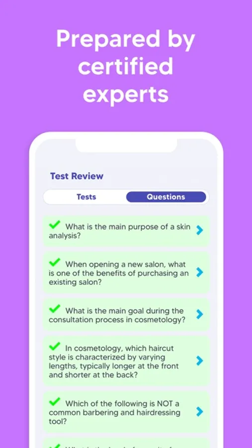Pass your Cosmetology State Board Exam with ease! Take realistic practice exams and quizzes to boost your chances of passing the real exam on your first try. With 2500+ questions written by experts, detailed explanations for each question, and hundreds of tests & quizzes at your fingertips, this is the only resource you need to prepare for your Cosmetology exam.