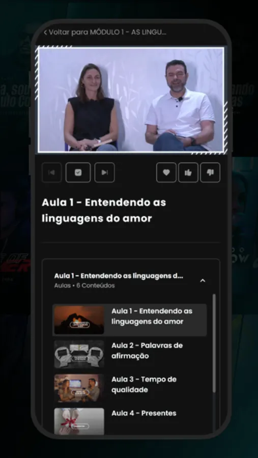 Além dos cursos, você tem acesso no aplicativo de todas as lives, masterclass e podcasts realizados