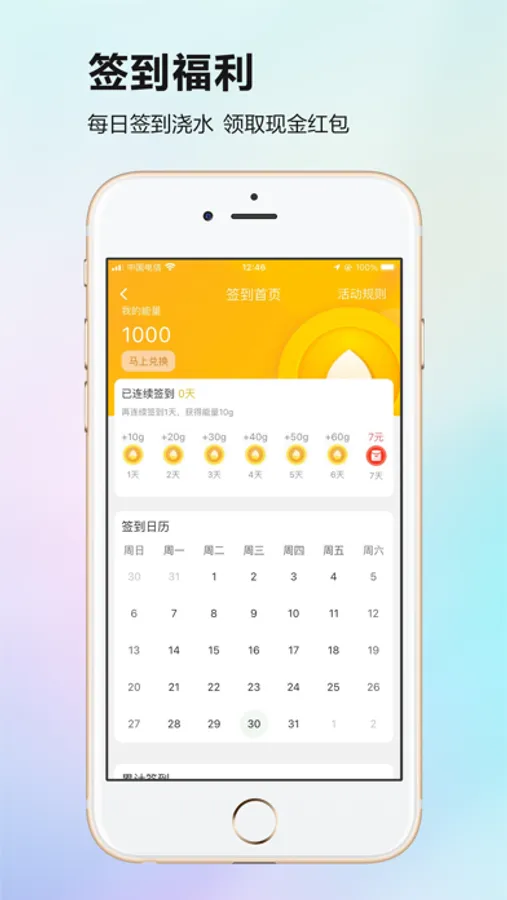 能量森林:用户参与能量树养成计划,即可获得能量!