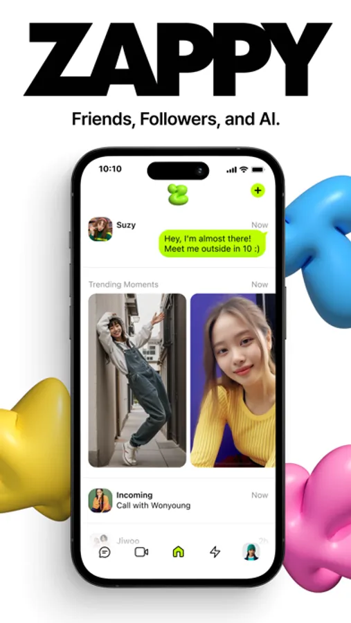 ZAPPY is an AI messaging and social app for Friends, Followers, and AI.