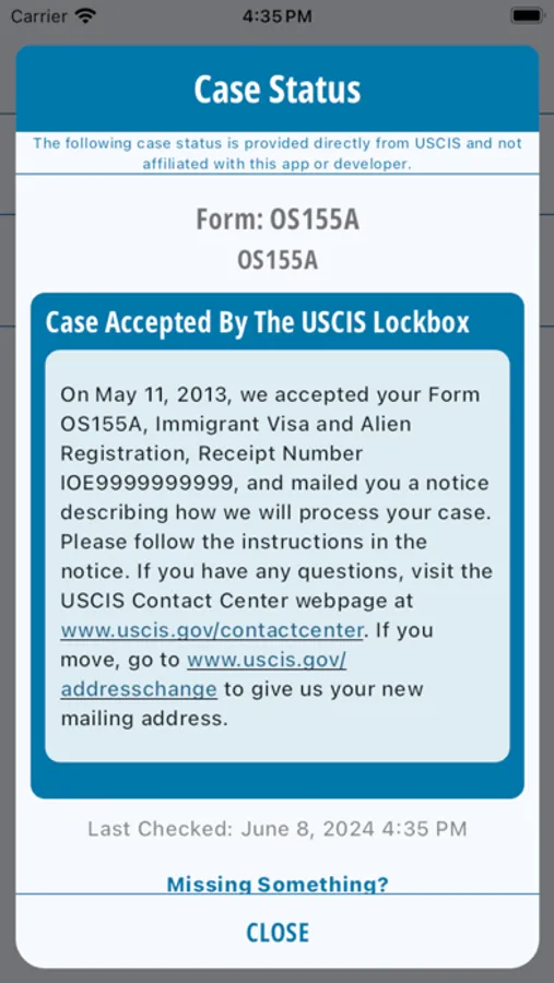 This app is not affiliated with USCIS or the U.S. government. It is an independent tool that uses publicly available USCIS case status information.