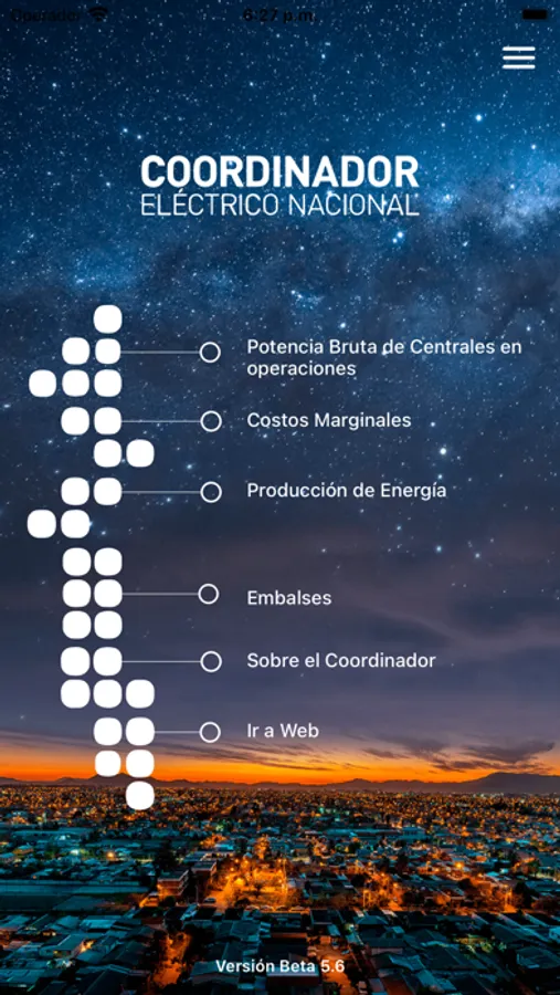 En esta aplicación del Coordinador Eléctrico Nacional de Chile, podrás consultar en línea datos relevante como son los Costos Marginales, la Potencia Bruta, Cotas de Embalses y Energía. Además tienes acceso directo a los canales de comunicación.
