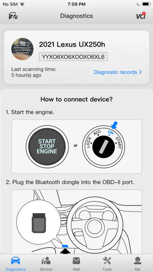 4. Quick vehicle identification with Auto VIN. Store and quickly access past records, and diagnostic reports.