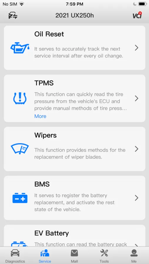 6. Supports commonly performed DIY service functions, such as oil reset, TPMS relearn, battery registration, and wipers replacement.
