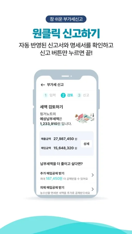 매년 바뀌는 어려운 세법까지 자동 반영된 신고서와 명세서를 확인하고 신고 버튼만 누르면 끝! 직접 신고와 대리신고 모두 가능합니다