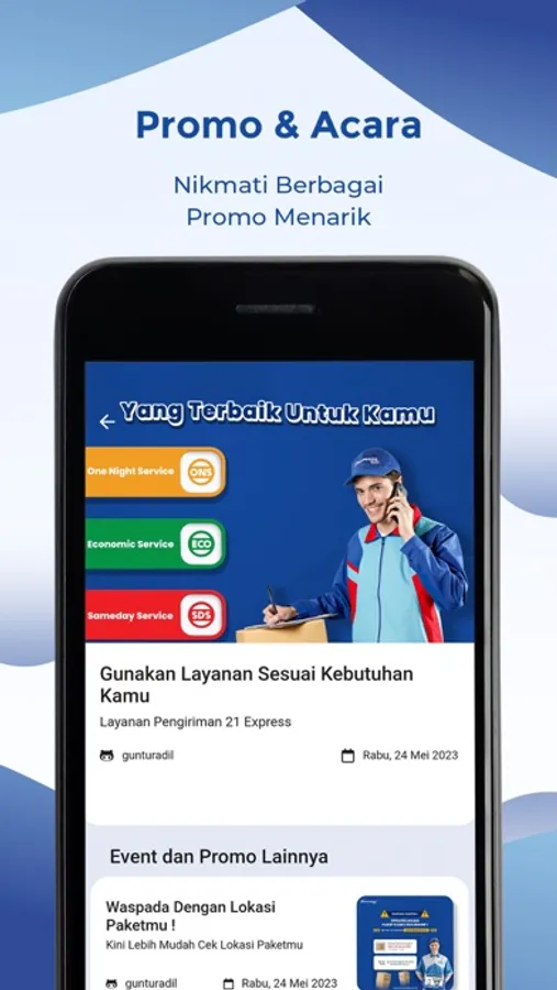 21 Express kini hadir untuk memudahkan pelanggan dalam melacak paket, mengecek tarif pengiriman dan melihat promo-promo yang menarik. Aplikasi ini juga membantu Anda mengembangkan bisnis dengan jasa pengiriman barang atau paket yang mudah diakses di ujung jari Anda.