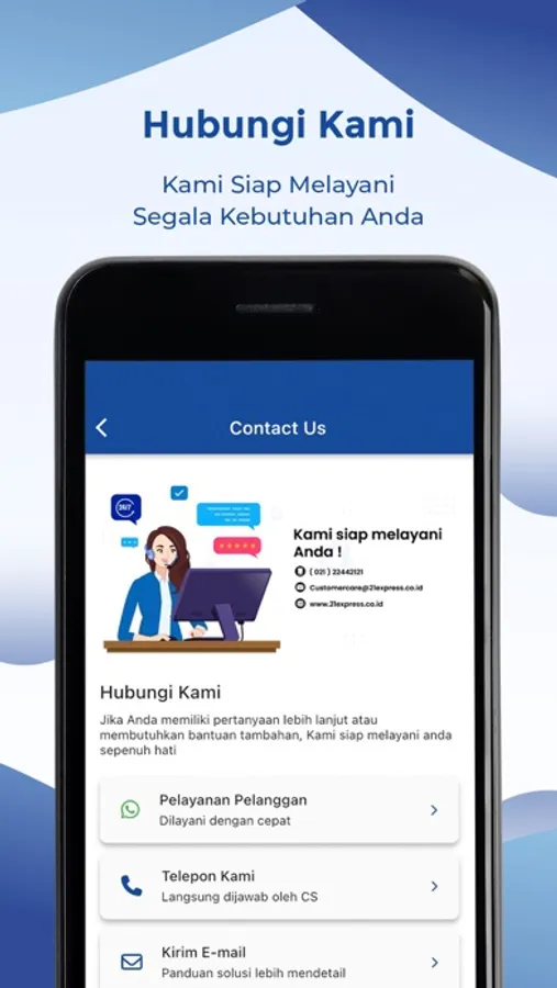Kami yakin setiap paket yang dikirim dengan 21 Express ditangani dengan penuh perhatian karena kebahagiaan pelanggan adalah suatu pencapaian besar bagi kami, tetapi jika ada pertanyaan, Anda dapat menghubungi kami melalui: