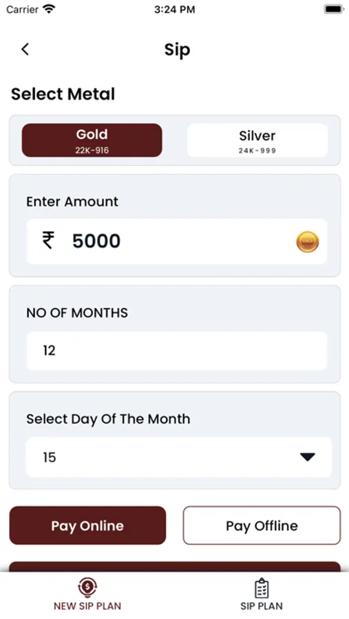 Customers can create an Monthly Saving Plan (SIP) in the App."