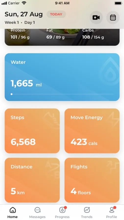 The app integrates with Apple Health to show your daily activity - distance, steps, active energy, and flights to help you better achieve your goals.