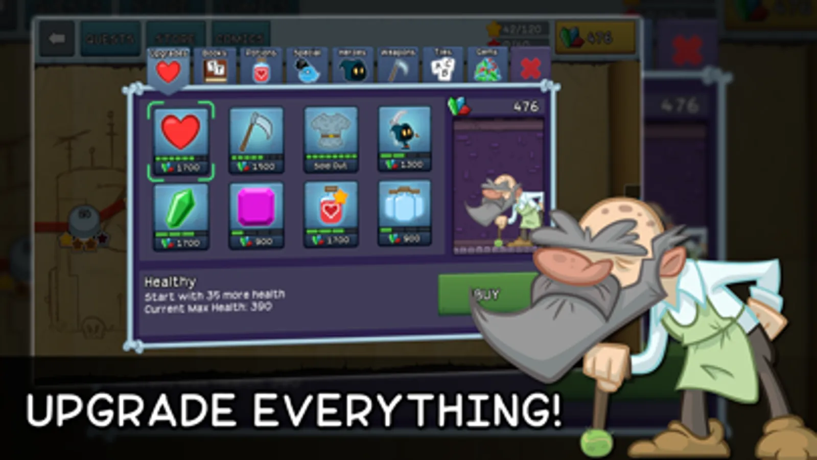 ● Tons of upgrades, books, potions, special items and weapons to help you on your journey