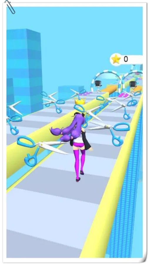 美发变变变躲避剪刀长发向前冲冲游戏是一款非常有趣好玩的休闲小游戏,你将扮演可爱的小女孩在道路上行走,获取更多的小星星,把头发变得更长,躲避奇怪的剪刀,游戏中大量的发型、服装和配饰供玩家选择,你也可以为自己的角色选择发型、搭配服装,成为时尚界的佼佼者。